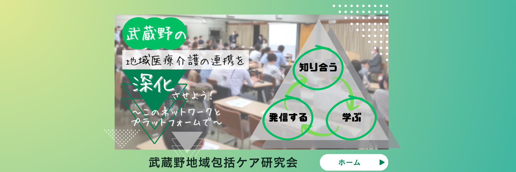 職種や事業所を超えて、武蔵野市の医療福祉に関心を持つ皆さまが会員となり繋がりを広めています